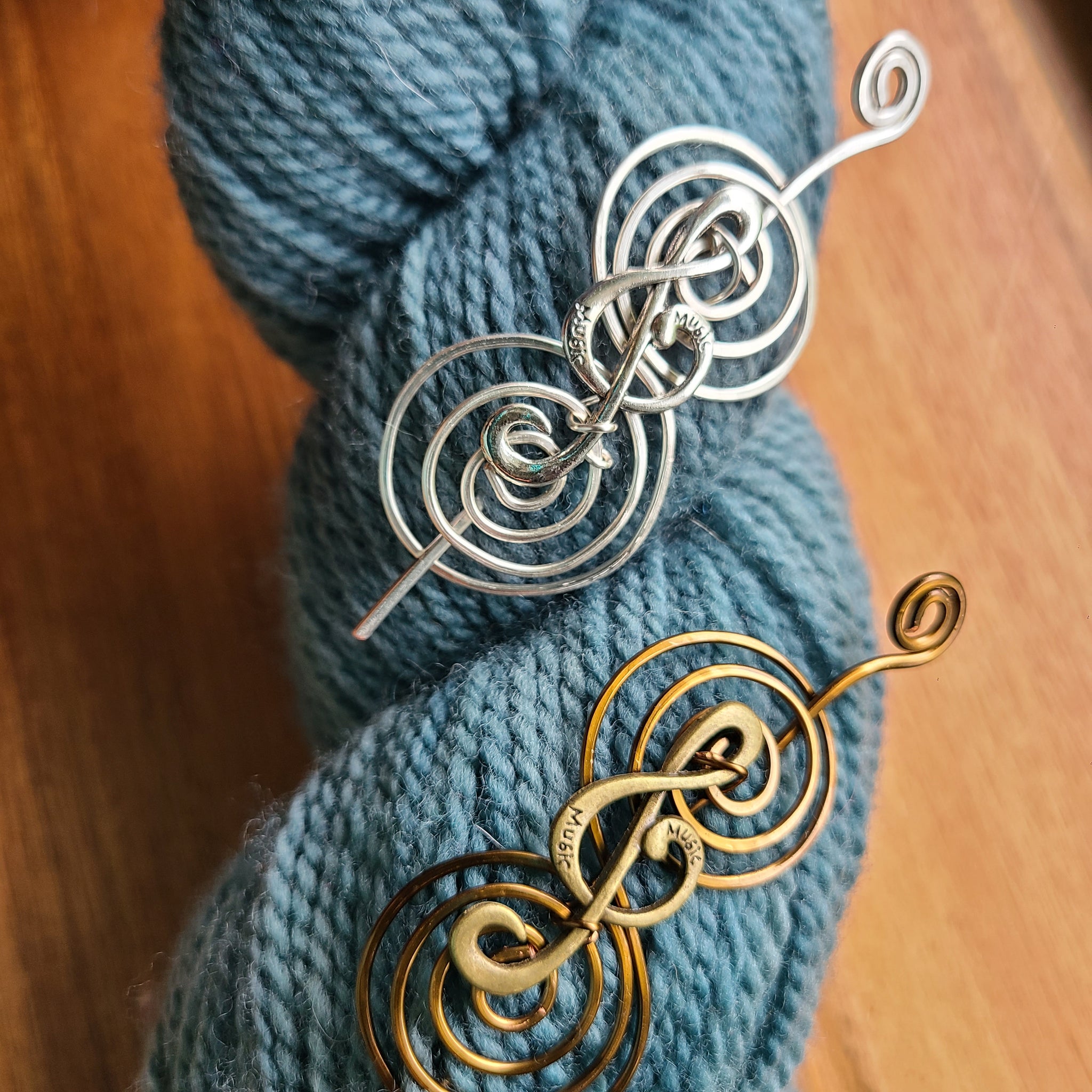 Adorn your shawls, cowls, scarves, cardigans, hats, etc with this Music Shawl Pin. Shine in silver or go bold with bronze!